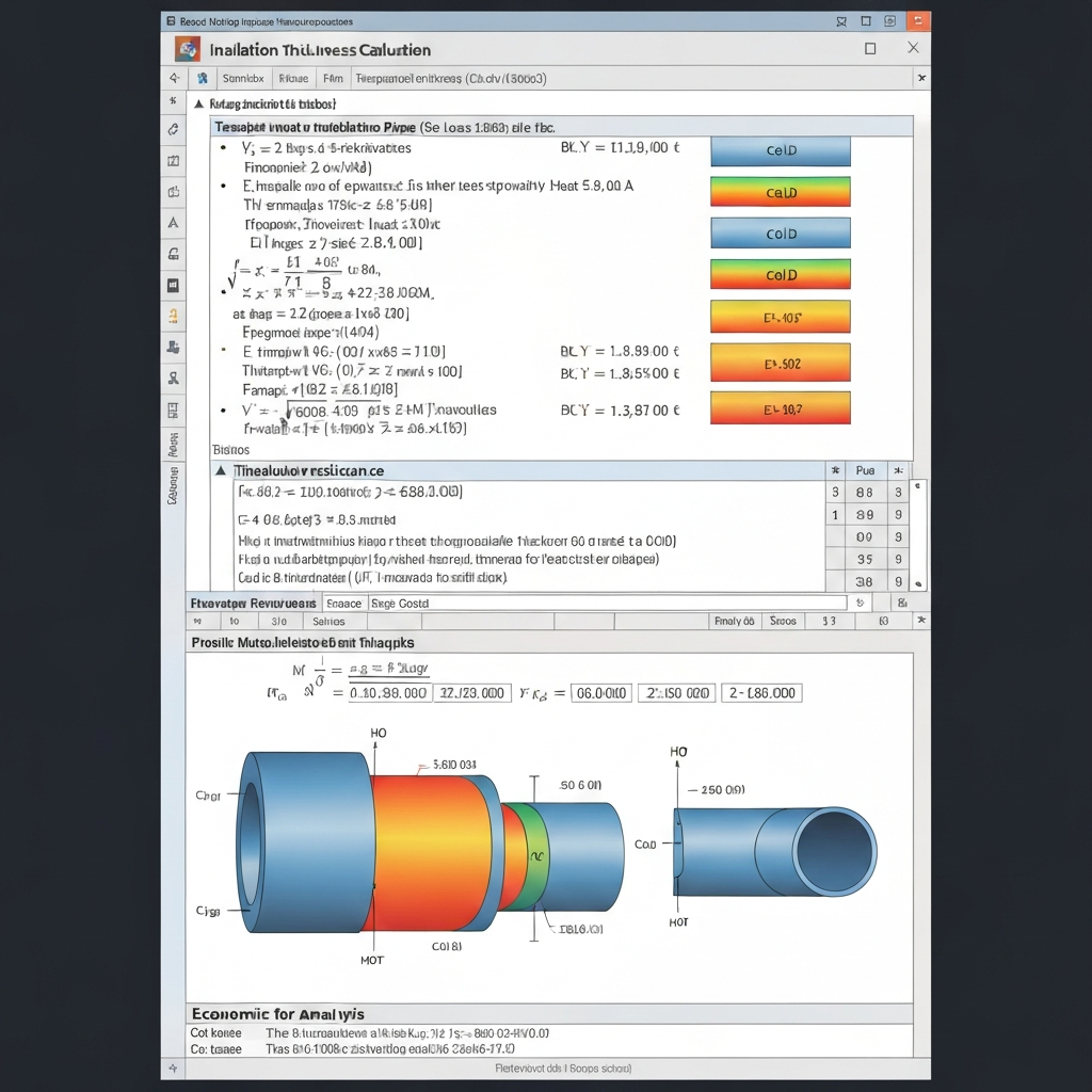 Insulation thickness calculation spreadsheet to minimize heat loss or maintain temperature in industrial systems.