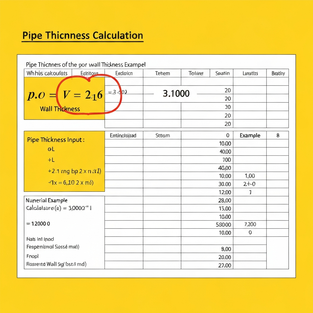 Pipe thickness calculation spreadsheet as per ASME B31.3 and other piping design codes for industrial applications.