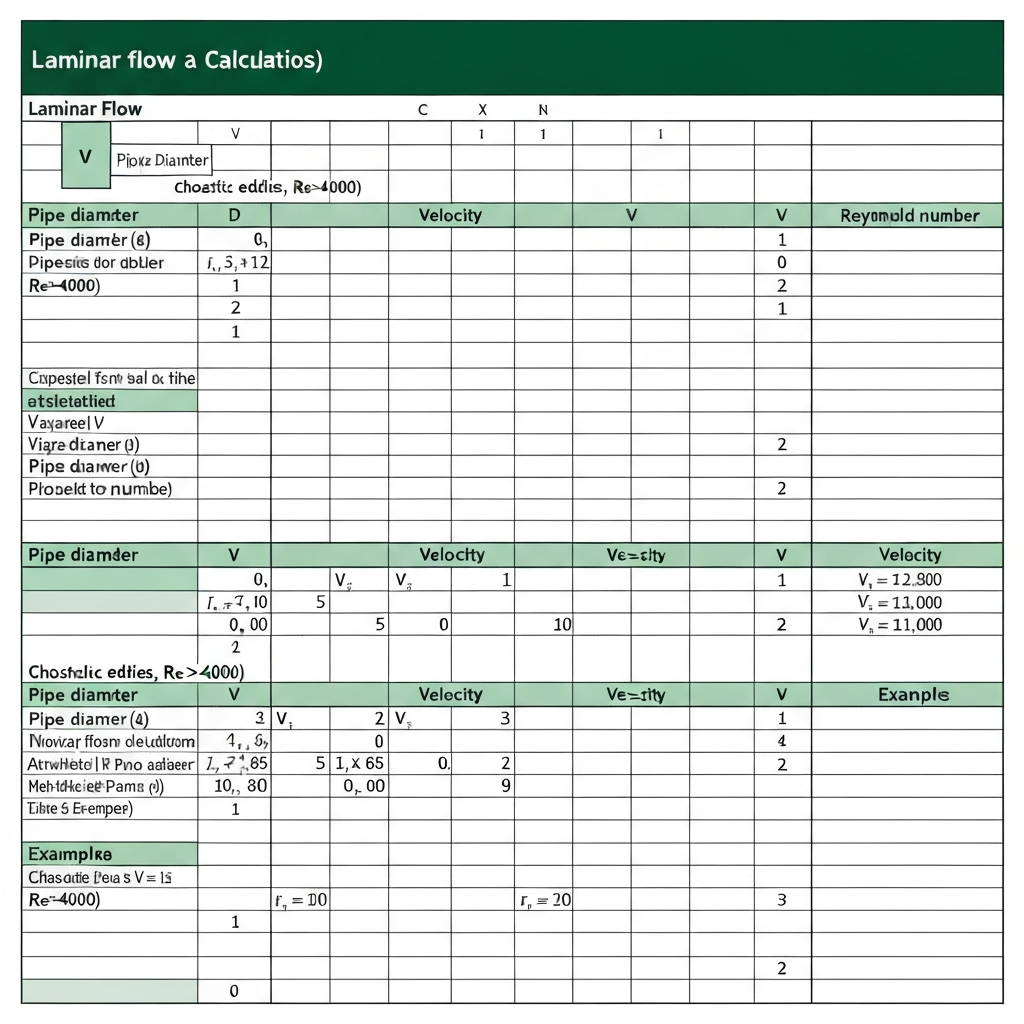 Reynolds number calculation spreadsheet for fluid flow analysis in pipes and process equipment to determine flow regime.
