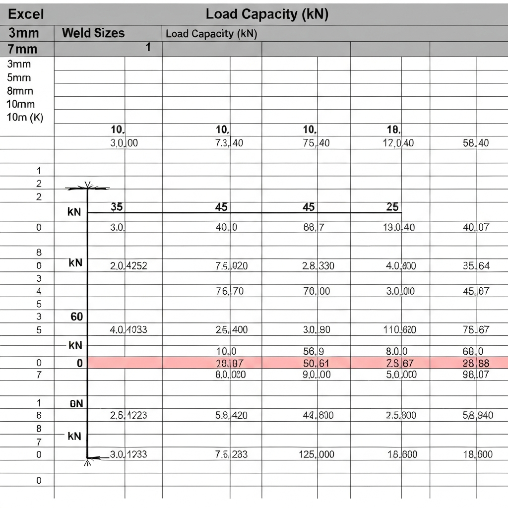 Spreadsheet to determine weld size versus load capacity for structural and industrial applications.